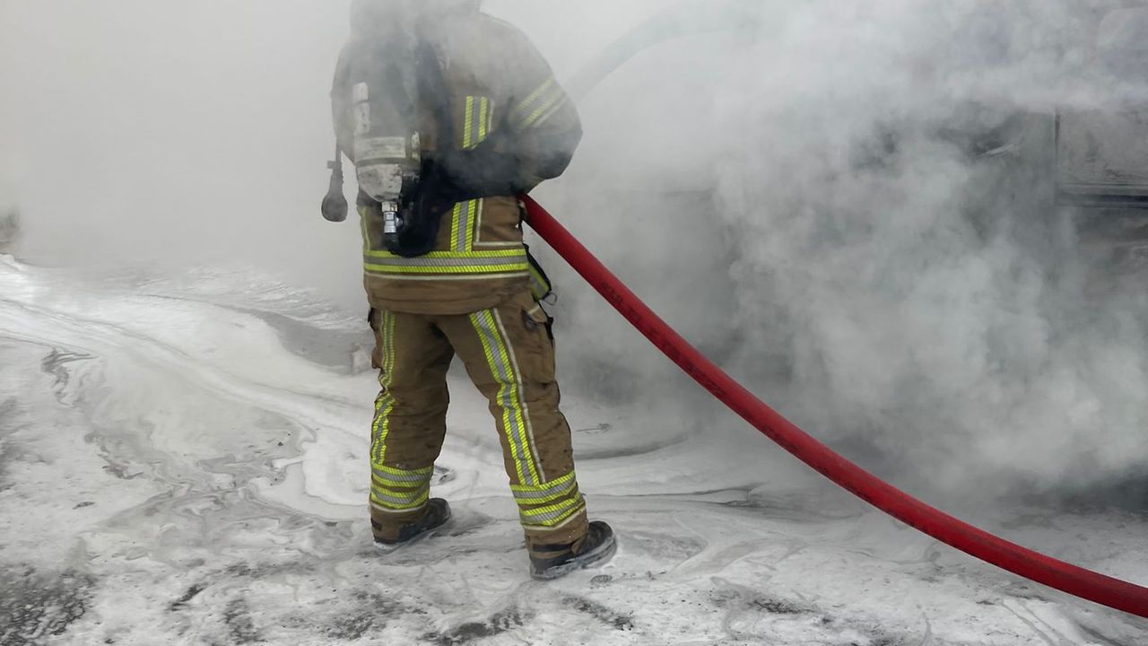 Yavuz YILMAZ/İNEGÖL (Bursa), (DHA)-BURSA'nın İnegöl ilçesinde seyir halindeki otomobilde çıkan yangın, itfaiye ekipleri tarafından söndürüldü. Otomobilin alev alev yandığı anlar, cep telefonu kamerasıyla görüntülendi.