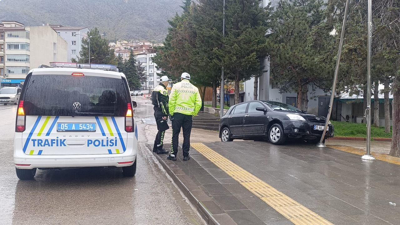 Şerife Serap KARA/AMASYA, (DHA)-AMASYA'da kaldırımdaki elektrik direğine çarpan otomobilin sürücü yaralandı, kaza güvenlik kamerasına yansıdı.