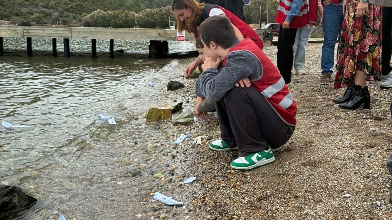 Fırat AKAY/BODRUM (Muğla), (DHA)- MUĞLA'nın Bodrum ilçesinde, özel gereksinimli öğrenciler, Gazze'ye destek olmak için yaptıkları kağıttan kayıkları dualarla denize bıraktı.