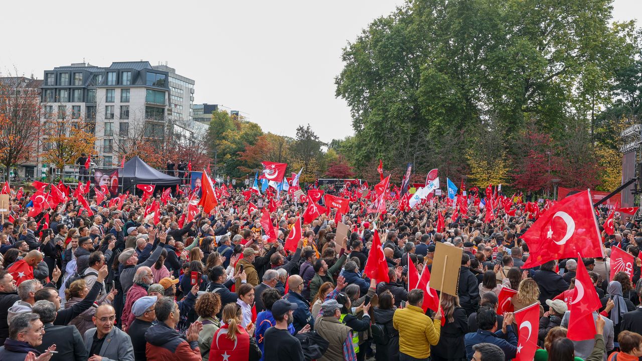 Özel, güçlü, demokratik, zengin bir ülke için çalıştıklarını ve mücadele ettiklerini dile getirerek, “Muhalefetteyken bile yurt dışındaki tüm temaslarımızda Kuzey Kıbrıs Türk Cumhuriyeti’nin, Filistin’in, Azerbaycan’ın çıkarlarını savunuyoruz. Bunu kimseden çekinmeden cesaretle yapıyoruz. Biz bunu icazetle değil, Gazi Mustafa Kemal’in partisinde olmanın verdiği cesaretle yapıyoruz. Siz çok yakından yaşıyorsunuz ki, Avrupa’dan bakınca Türkiye’de olanı, biteni anlamak çok kolay değil. Türkiye’de 23 yıllık bir AK Parti iktidarı var. 23 yıl sonra ilk kez seçim kaybetti. Biz 47 yıl aradan sonra ilk kez birinci parti olduk. Seçimde yüzde 38 oy aldık, belediyelerin yüzde 65’ini kazandık. Bugüne kadar ‘demokrasi’ diyen, demokrasiden dem vuran Erdoğan, demokrasi treninden o istasyonda indi. O günden bugüne artık sandıktan değil, başka yerlerden medet umduğu için Türkiye’de demokrasiyi askıya almaya çalışıyor. Halkın tercihine saygı duymadı. Önce belediye başkanlarımızı bakanlarına ‘Bunları silkeleyin’ diyerek, gelen paraları keserek, geçmişten birikmişleri CHP’li belediyelerden bir seferde tahsil ederek hizmeti aksatmaya çalıştı. Baktı bu yeterli olmuyor, bu sefer Cumhurbaşkanı adayımızın diplomasını 31 yıl sonra iptal etti” diye konuştu.
