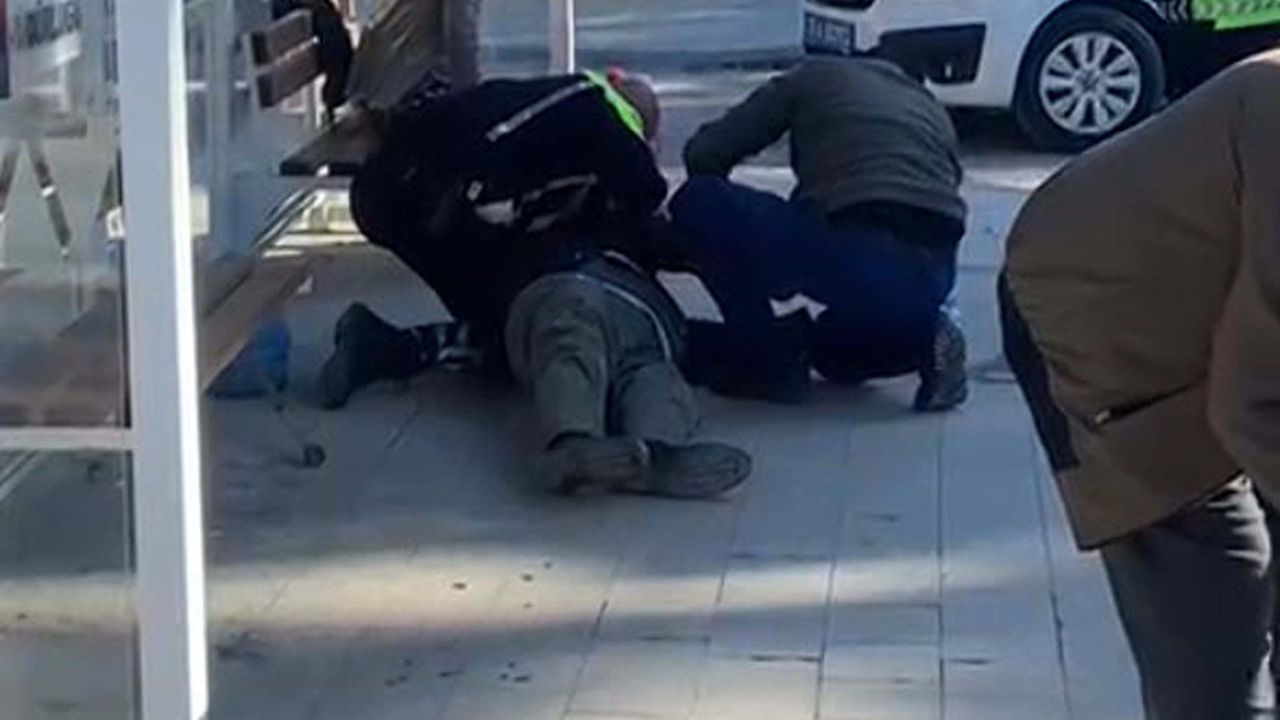Zübeyir TABAK/TİRE (İzmir), (DHA)- İZMİR'in Tire ilçesinde otobüs durağında otururken bir anda yere düşüp, başını beton zemine çarpan ve dili boğazına kaçan Semayi Emirhor'a (79), ilk müdahaleyi olay yerinde bulunan polis memuru Murat Akbulut yaptı. Akbulut'un müdahalesiyle kurtulan Emirhor, hastaneye kaldırıldı.