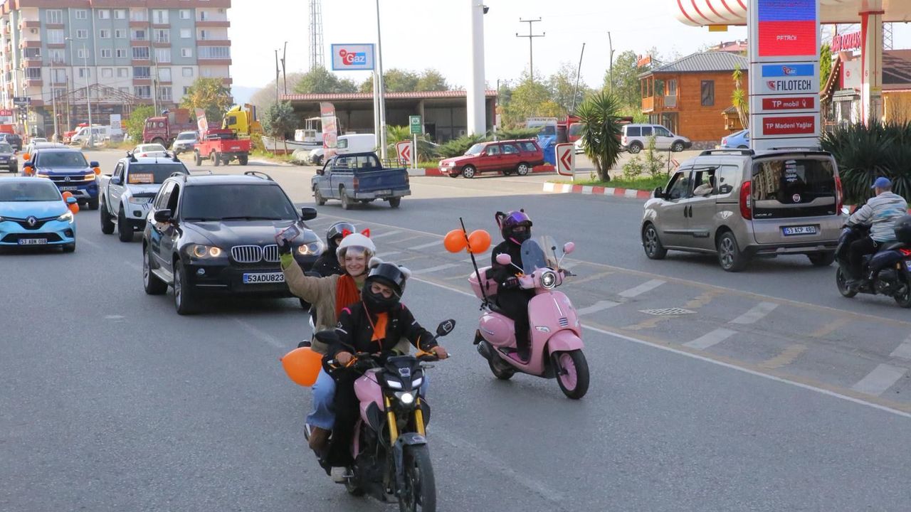 Ardeşen ilçesinde 25 Kasım Kadına Yönelik Şiddete Karşı Uluslararası Mücadele Günü'nde, Kent Konseyi Derneği tarafından farkındalık oluşturmak adına konvoy düzenlendi. İlçenin sembolü olan atmaca heykeli önünde toplanan kadın sürücüler, turuncu kıyafetler giyip, araçlarını balonlarla süsledi. Basın açıklaması sonrası direksiyona geçen kadın sürücüler, şehir turu attı.