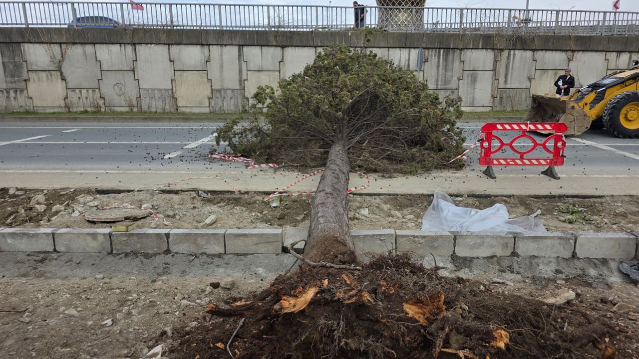 Mehmet Can PEÇE/RİZE, (DHA)- RİZE'de etkili olan fırtına nedeniyle devrilen ağaçlar, caddeyi ulaşıma kapattı. Ekipler, bölgede temizlik çalışmaları başlattı.