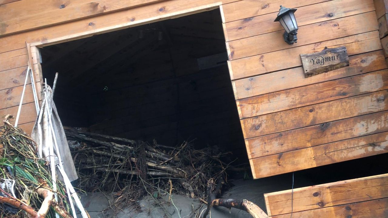 İŞ MAKİNELERİ DEVRİLDİ, BUNGALOVLARI SEL VURDU