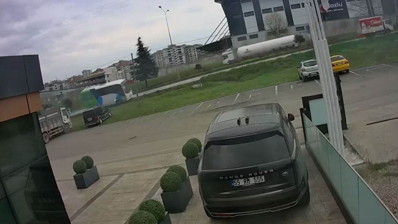 KAZA KAMERADASamsun'un İlkadım ilçesinde 9'u öğrenci 11 kişinin yaralandığı otobüs kazası, bir iş yerinin güvenlik kamerasına yansıdı. (DHA)