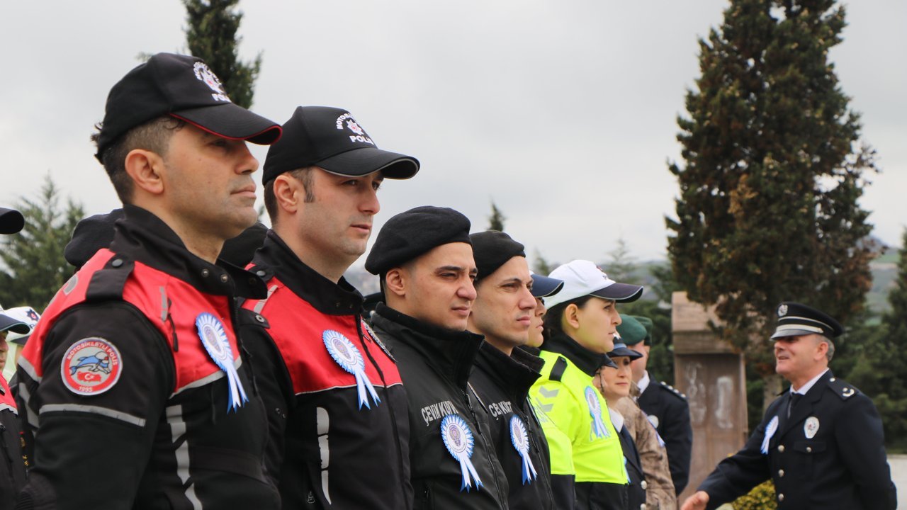 Berkay YILDIZ/SAMSUN, (DHA)- SAMSUN'da, Türk Polis Teşkilatı'nın kuruluşunun 181'inci yıl dönümü çeşitli etkinliklerle kutlandı. Görevi başında şehit olan polis memurları da mezarları başında anıldı.