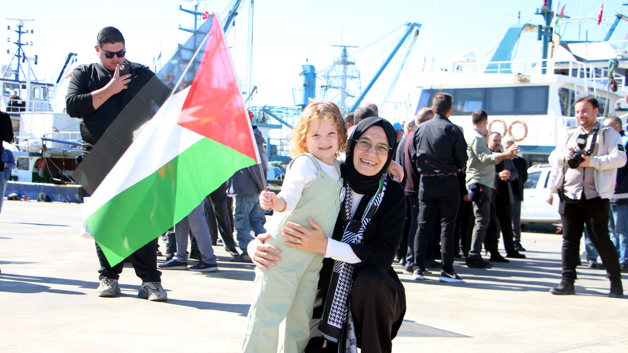 Konuşmaların ardından Gazze’de hayatını kaybedenler için dua okundu. Okunan duadan sonra, 60 tekne ve bot denize açılarak, 2 kilometrelik sahil hattında, Filistin bayraklarıyla tur attı. (DHA)