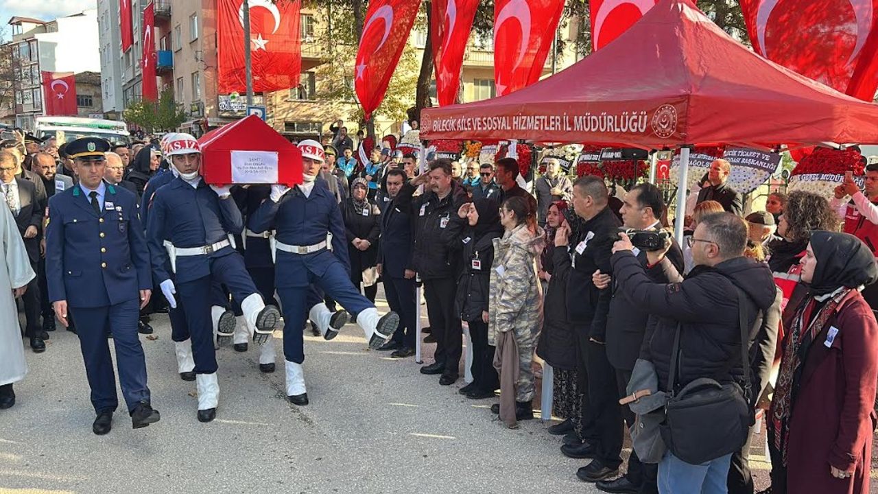 Şehit Hava Uçak Bakım Astsubay Üstçavuş İlhan Ongan’ın cenazesi, ikindi namazı sonrası kılınan cenaze namazının ardından Bilecik Şehitliği’nde toprağa verildi. (DHA)
