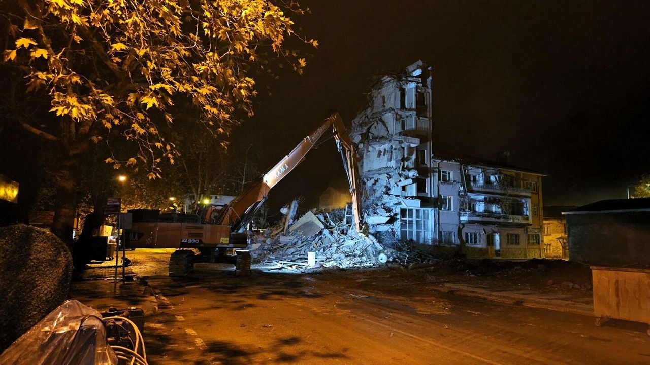 Kadriye SEYMAN-Necip KARATUNA/SINDIRGI (Balıkesir), (DHA)- BALIKESİR'in Sındırgı ilçesinde 27 Ekim'de meydana gelen 6.1 büyüklüğündeki depremde ağır hasar alan yapıların yıkımına başlandı.