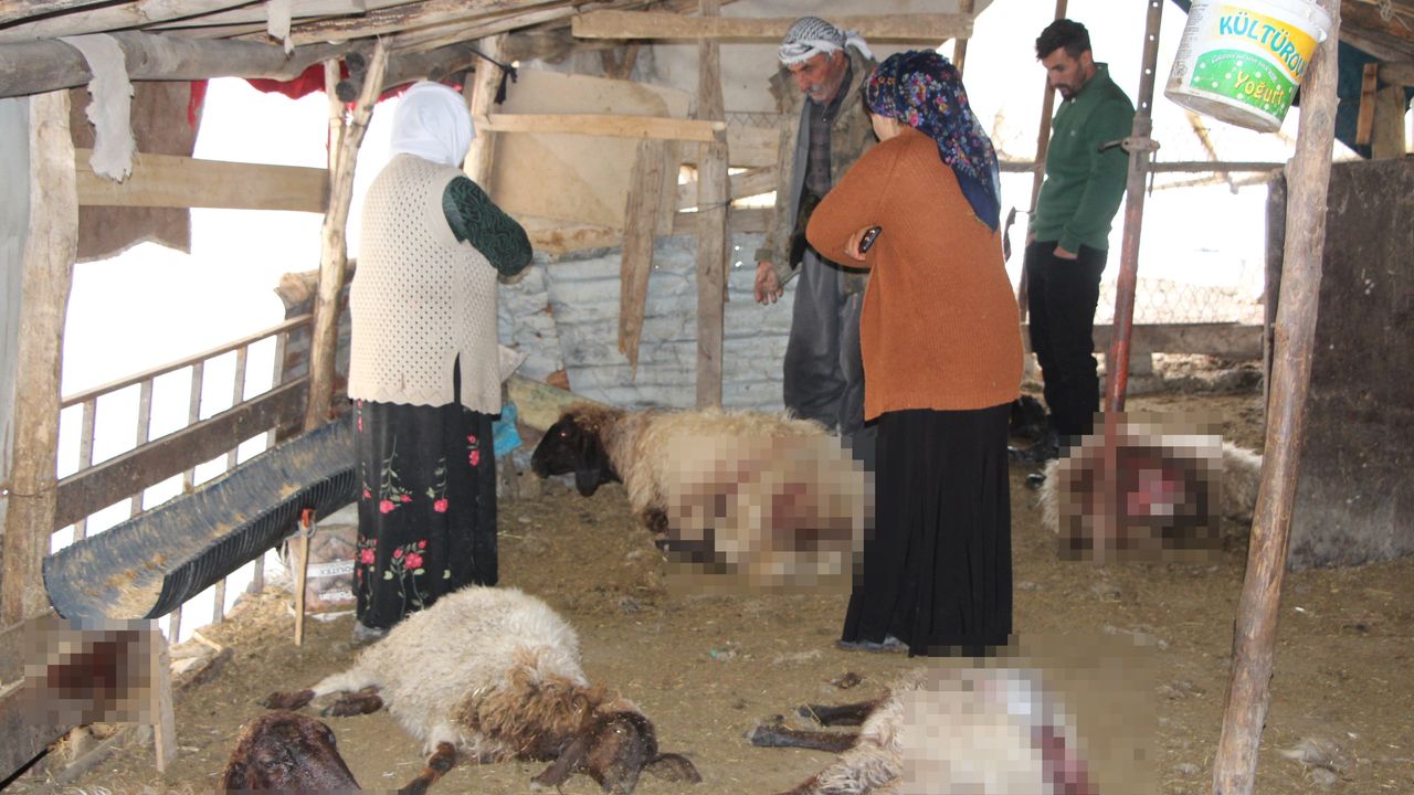 Olay, gece saatlerinde Yeşilyurt Mahallesi Rezuk mevkisinde meydana geldi. İddiaya göre; çadıra giren köpekler, koyun sürüsüne saldırdı. 28 koyun öldü, 15 koyun yaralandı. Hayvanların sahibi Azime Ertak, eşini hayatını kaybettikten sonra 8 çocuğuyla geçimini hayvancılıkla sağlamaya çalıştığını belirterek, "Maddi imkanlarımız olmadığı için ahır yapamadık, çadır kurabildik. Sabah çocuğumu arayıp, köpeklerin çadıra girdiğini söylediler. Geldik, 28 koyunun telef olduğunu, 15 koyunun yaralandığını gördük" dedi. Tarım ve Orman İl Müdürlüğü ekipleri olay yerinde inceleme yaparken, Şırnak Belediyesi'ne bağlı veteriner ekipleri de yaralı hayvanlara kuduz aşısı yaptı. (DHA)