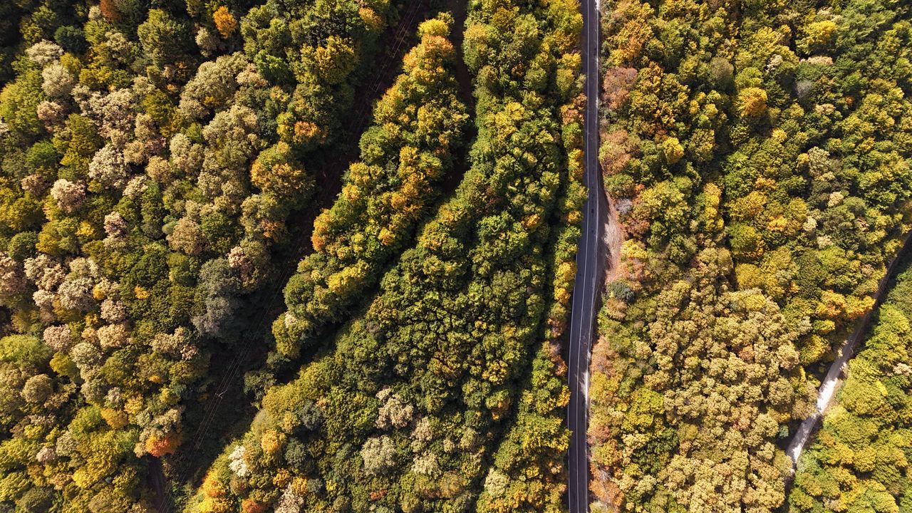 Yeşil doğası ve yüzde 65’i ormanlarla kaplı Bolu’da sonbaharın gelmesiyle birlikte ormanlarda renk cümbüşü yaşanmaya başladı. Sağında ve solunda ormanların bulunduğu Bolu-Kıbrıscık-Seben kara yolundaki ormanlardaki ağaçlar sonbaharın gelişiyle birlikte sarardı. Ağaçların yeşil renginin, sarı ve kahverengi tonlarıyla iç içe geçmesiyle oluşan eşsiz manzara dron ile görüntülendi. (DHA)