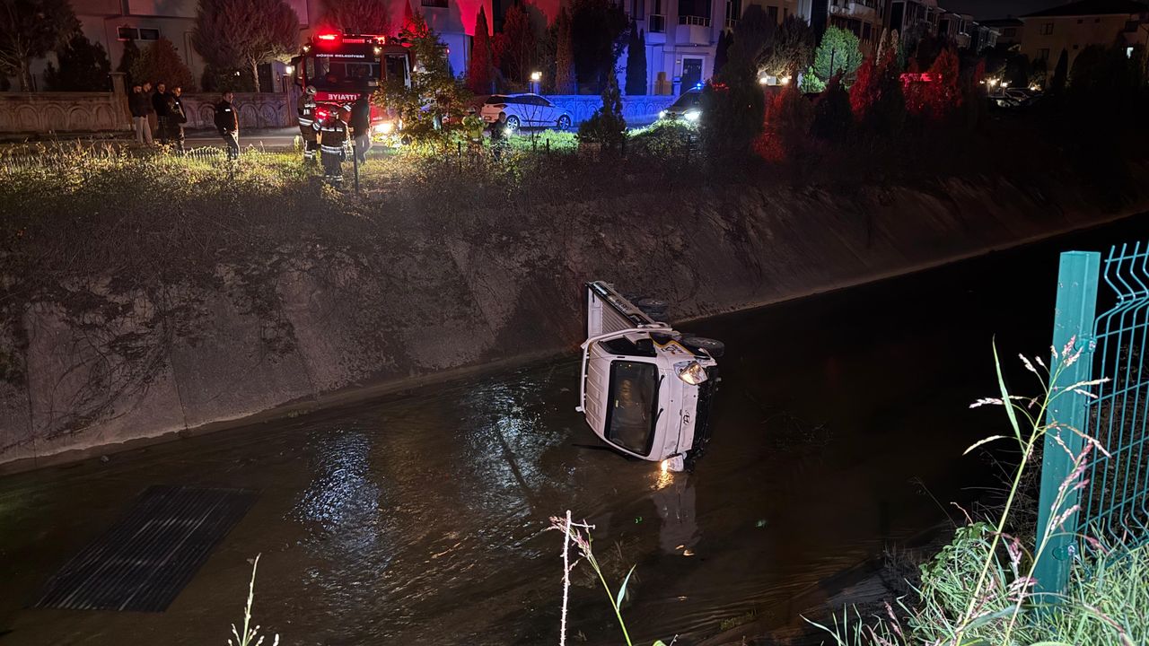 Musa KESKİN/DÜZCE, (DHA)- DÜZCE'de sulama kanalına devrilen kamyonetin alkollü sürücüsü Alihan A. hafif yaralandı.