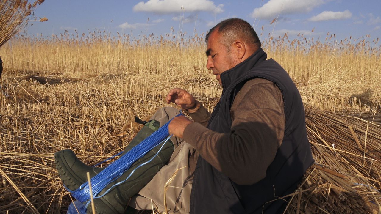 Bölgede kamış hasadı yapan işçilerden 2 çocuk babası Mustafa Kürkçü (46), "Buralarda yangın şeritleri oluşturuyoruz. Bunları orakla temizliyoruz. Yangın şeritleri oluştururken traktör kullanılıyor, temizlik işi tamamen beden gücüyle, orakla yapılıyor. Temizlik yapmamızın amacı, yangınları önlemek. Çünkü sazlık belirli bir süre biçilmediği zaman çöküntü oluşuyor. Kuluçka hayvanlar, buradaki canlılar, kuluçkalarını kaybediyor. Kuluçkalamak için başka, farklı yerlere gitmek zorunda kalıyor ve yangın riski oluşturuyor ve bu da bölgeyi, doğamızı çok büyük şekilde tehdit ediyor. Şu an kuraklıktan dolayı özellikle bu sazın bir an önce temizlenmesi gerekiyor ki yangının önüne geçebilelim" diye konuştu.
