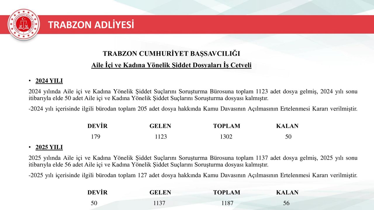 Selçuk BAŞAR/TRABZON,(DHA)- TRABZON Cumhuriyet Başsavcısı Sedat Çelik, 2025 yılında kentte aile spor, aile içi şiddet ve hırsızlık suçlarında geçen yıla oranla azalma olduğunu belirterek, 'İlimiz asayiş bakımından çok güvenli suç oranı bakımından çok huzurlu bir şehir olduğunu söyleyebiliriz. Adli açıdan nüfusuna oranla suç oranı düşük bir ilimiz var' dedi.
