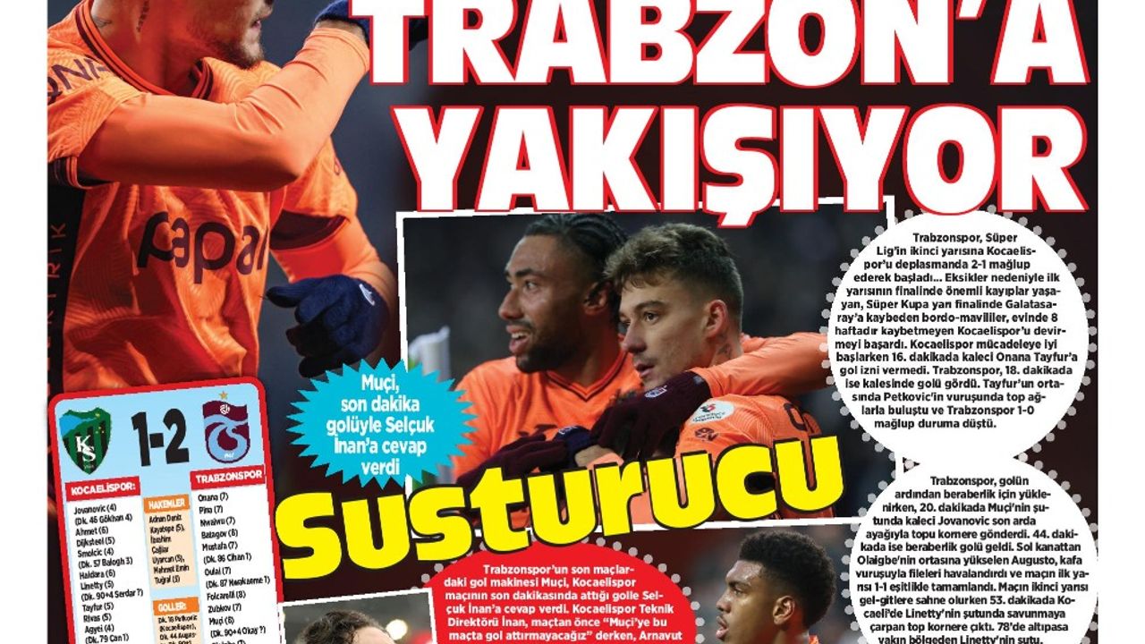 Öte yandan Trabzon'da yayın yapan yerel gazeteler de Kocaelispor karşısında deplasmanda alınan galibiyeti manşetlerine farklı başlıklarla taşıdı. Manşetlerde Muçi'nin performansı ön plana çıktı. Yerel basında öne çıkan başlıklar şu şekilde: