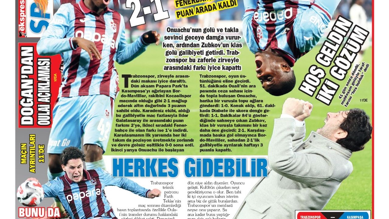 Öte yandan Trabzon'da yayın yapan yerel gazeteler de Kasımpaşa karşısında alınan galibiyeti manşetlerine farklı başlıklarla taşıdı. Yerel basında öne çıkan başlıklar şu şekilde