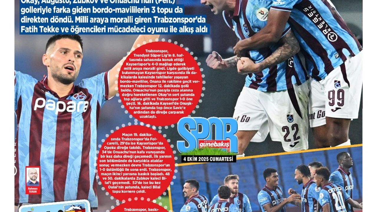 Nurgül GÜNAYDIN / TRABZON, (DHA)– TRABZONSPOR, Kayserispor karşısında oynadığı etkileyici futbolla haftayı farklı galibiyetle kapattı. Onana’nın kurtarışları, Okay Yokuşlu’nun golü ve Tekke’nin hücum planı bordo-mavililere hem moral hem güven kazandırdı.