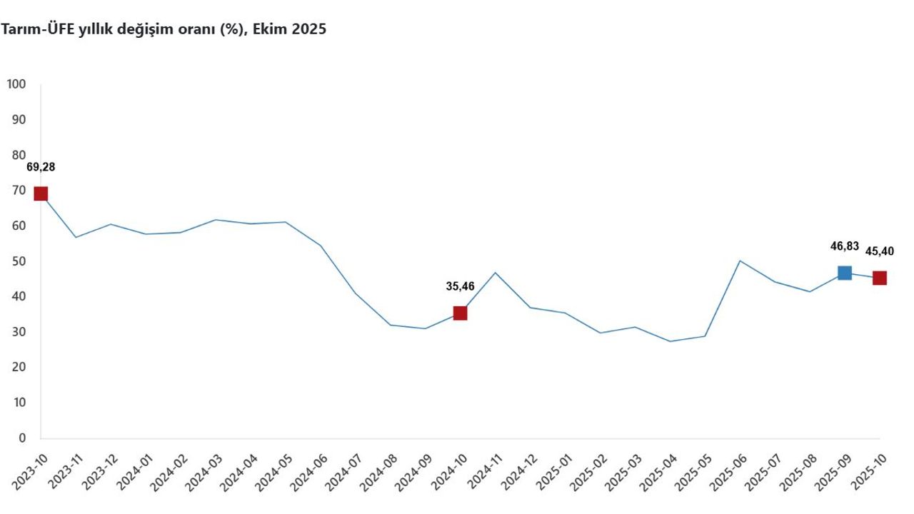 Aybala MELEK/ANKARA, (DHA)- TÜRKİYE İstatistik Kurumu (TÜİK), tarım ürünleri üretici fiyatlarının ekim ayında yıllık yüzde 45,40; aylık yüzde 4 arttığını açıkladı.