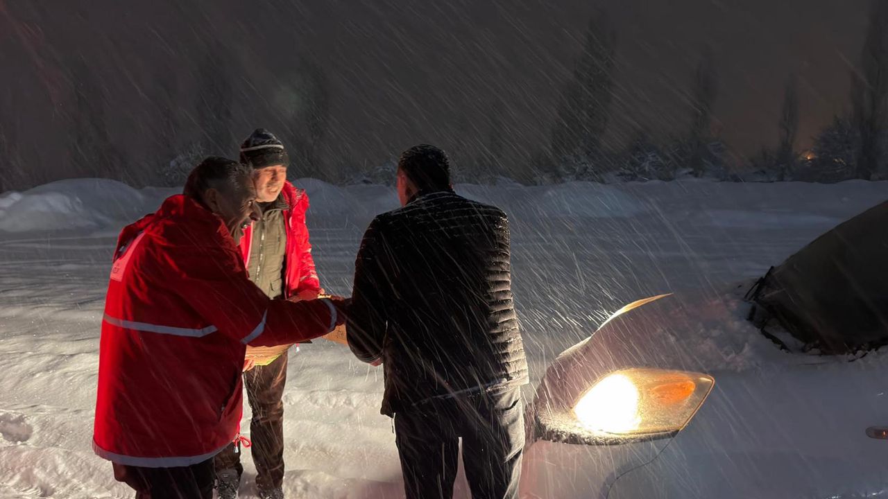 Muhammed Sami MARAL/ MUŞ, (DHA)- MUŞ- Bingöl Karayolunda etkili olan yoğun kar yağışı nedeniyle yolda mahsur kalan 20 araçtaki yaklaşık 50 kişinin ihtiyaçlarının karşılanması amacıyla Kızılay ekipleri bölgeye sevk edildi.