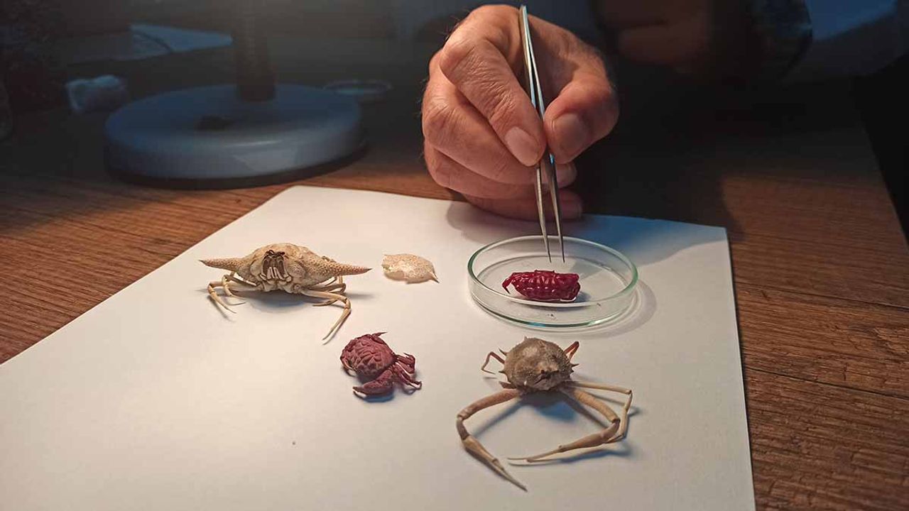 Prof. Dr. Tahir Özcan, bu yıl içerisinde Türkiye kıyıları için ilk kez kaydedilen Liomera rugipes adlı yengeç türünün yanı sıra, daha önce Antalya Körfezi kıyılarında bildirilen bir başka yabancı türün varlığının da yeniden kayıt altına alındığını hatırlatarak, "Kıyılarımızda rapor edilen yabancı türlerin büyük bölümünün Hint-Pasifik kökenli, bu türlerin çoğunlukla Süveyş Kanalı ya da deniz trafiği yoluyla Akdeniz’e giriş yaptığını söyleyebilirim. Dörtyol ve Karataş bölgesinde balıkçı ağlarına takılarak ilk kez tespit ettiğimiz bu Liomera rugipes adlı yengeç türü elimize iki bireyi geçti. 2 santimetre büyüklüğünde popülasyonunda artacağını tahmin ediyoruz. Bilimsel kayıtlarımıza da girmiş bulunuyor" dedi.