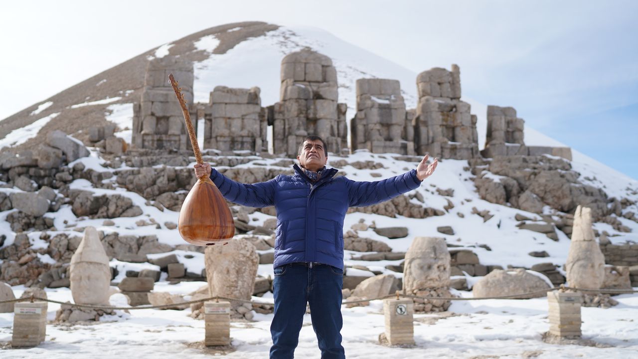 Mahir ALAN/ADIYAMAN, (DHA)-ADIYAMAN'da Nemrut Dağı'na tırmanan ve renkli kişiliği ile bilinen türkücü Aydın Aydın, yapay zekanın birçok mesleği ele geçireceğini belirterek sazını parçaladı.