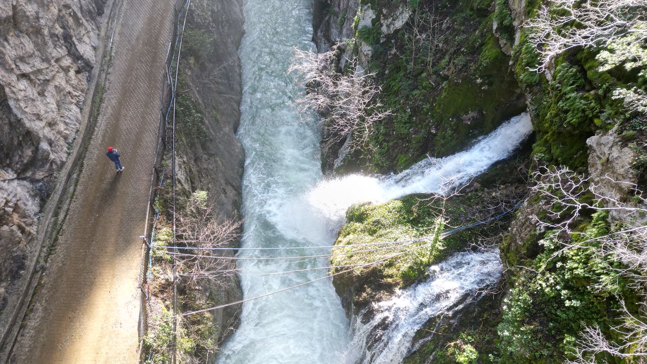 Şelalenin bulunduğu Ulus ilçesine aralık ayında metrekareye 183,6 kilogram, ocak ayında ise metrekareye 128 kilogram olmak üzere toplam 311,2 kilogram yağış düştü. Geçen haftalarda bölgeye yağan 1,5 metre kalınlığındaki kar eridi. Kar suları, mevcut şelalenin yaklaşık 20 metre alt bölümünde kaya oyuğundan akmaya başladı. 10 metre yükseklikten aşağıya suların aktığı yeni bir şelale daha oluştu. Kanyonda oluşan iki şelale ve gökkuşağı manzarası dron ile görüntülendi. (DHA)