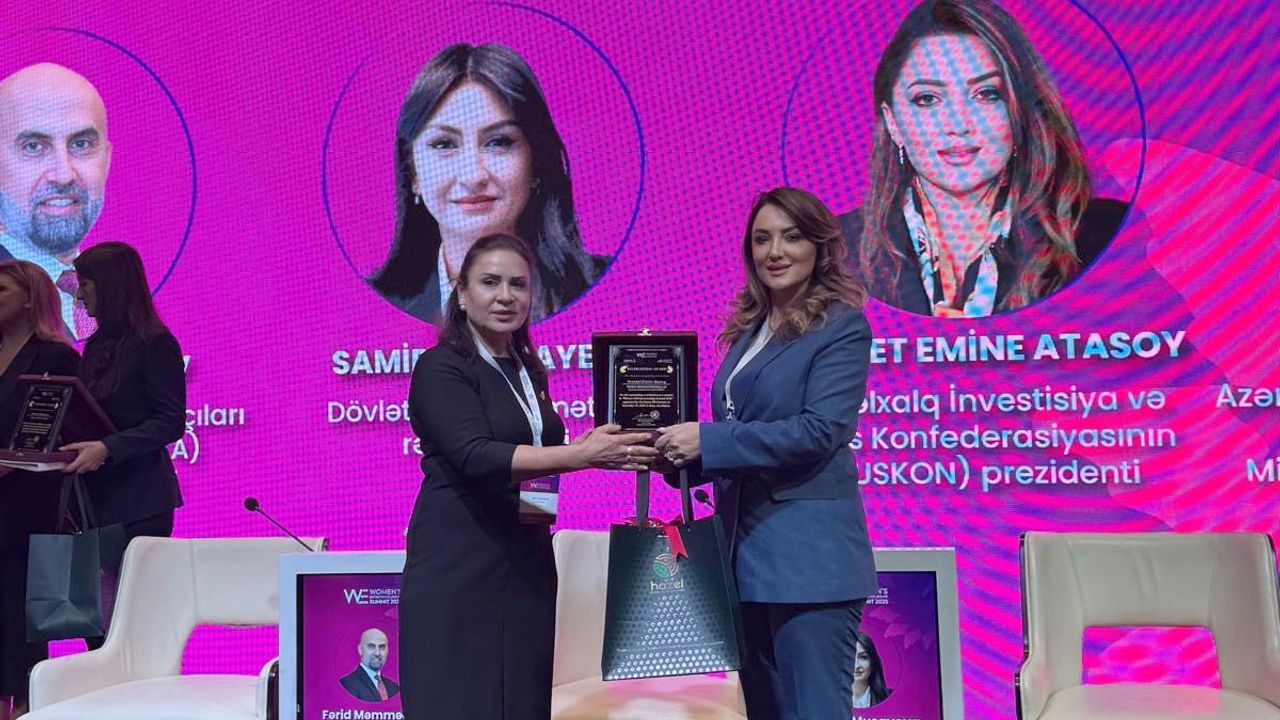ANKARA, (DHA)- ULUSLARARASI Yatırım ve İş Dünyası Konfederasyonu (ULUSKON) Genel Başkanı ve Birleşmiş Milletler İyi Niyet Elçisi Nezaket Emine Atasoy, Azerbaycan’ın başkenti Bakü’de düzenlenen ‘Women’s Entrepreneurship Summit 2025’ zirvesinde ‘Yılın Başarılı İş Kadını’ ödülüne layık görüldü.