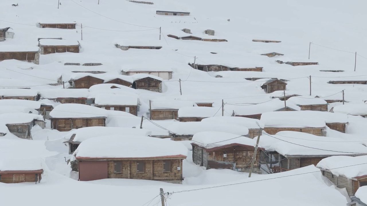 Yalçın ŞAHİN/ÇAMLIHEMŞİN (Rize), (DHA)-RİZE'nin Çamlıhemşin ilçesine bağlı Kavrun Yaylası'nda kar kalınlığı 3 metreyi aştı. Köy evlerinin beyaz örtüyle kaplandığı yayla, dron kamerasıyla görüntülendi.