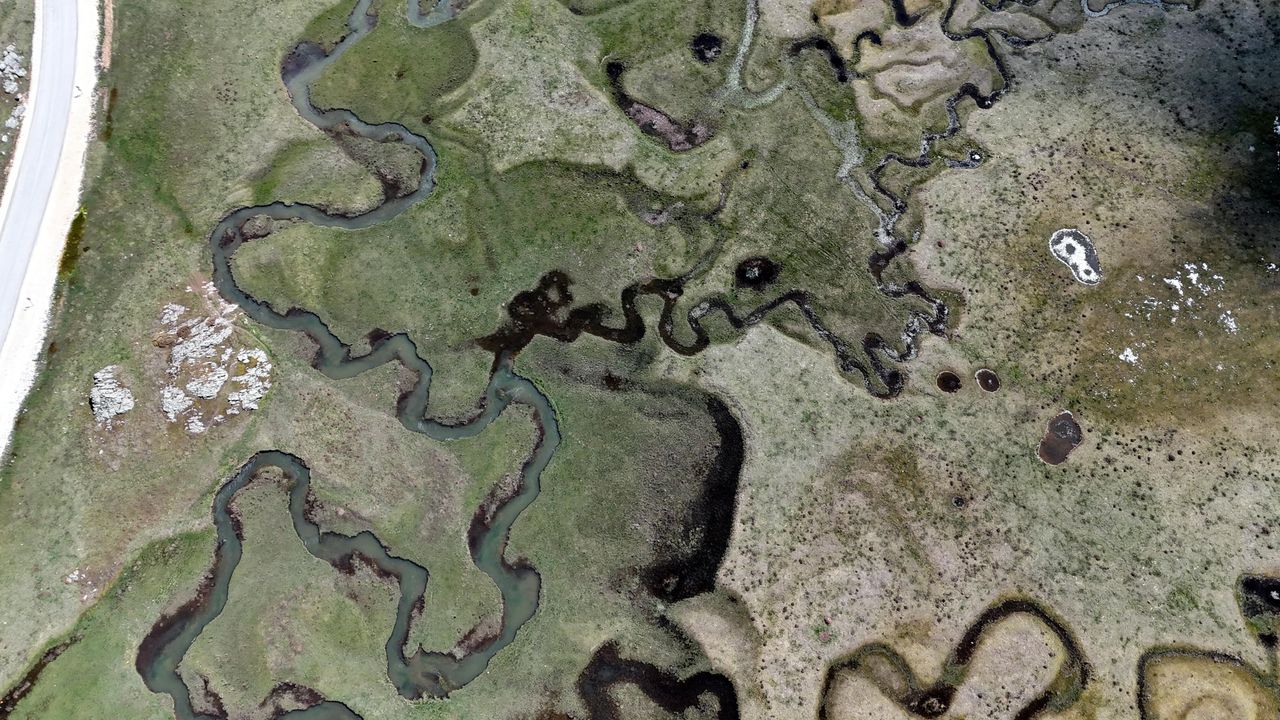 Mutlu YUCA/BOLU,(DHA)-BOLU'da yemyeşil meraların bulunduğu Sarıalan Yaylası'nda eriyen kar suları ve yağmurla dolan mendereslerin oluşturduğu manzara dron ile görüntülendi.
