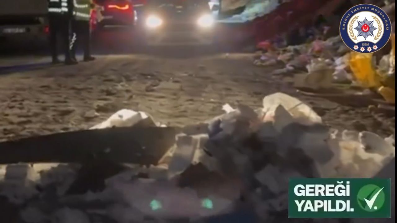 Edirne İl Emniyet Müdürlüğü tarafından yapılan kamera izleme çalışmaları kapsamında Karaağaç Mahallesi'ndeki Yüksek Hızlı Tren Köprüsü yakınında, yol kenarına çevreyi kirletecek ve taşıt yoluna engel oluşturacak şekilde hafriyat döken kamyon sürücüsü tespit edildi. Polis tarafından yakalanan sürücüye, 'Karayolları Trafik Kanunu' kapsamında 5 ayrı maddeden 13 bin 592 lira, Edirne Belediyesi ekiplerince ise 'Kabahatler kanunu' kapsamında 50 bin lira olmak üzere toplam 63 bin 592 lira idari para cezası uygulandı. Edirne Valiliği'nin sanal medya hesabından yapılan paylaşımda, 'Gereği yapıldı. Yola hafriyat döken sürücü yakalandı. Trafik güvenliğini tehlikeye atan ve çevreye zarar veren hiçbir ihlale müsamaha gösterilmeyecek, denetimlerimiz kararlılıkla devam edecektir. Trafik güvenliğini ve çevreyi tehdit eden durumları 112 Acil Çağrı Merkezi'ne bildirelim. Biz gereğini yaparız' ifadeleri kullanılarak, olayın görüntülerine yer verildi. (DHA)