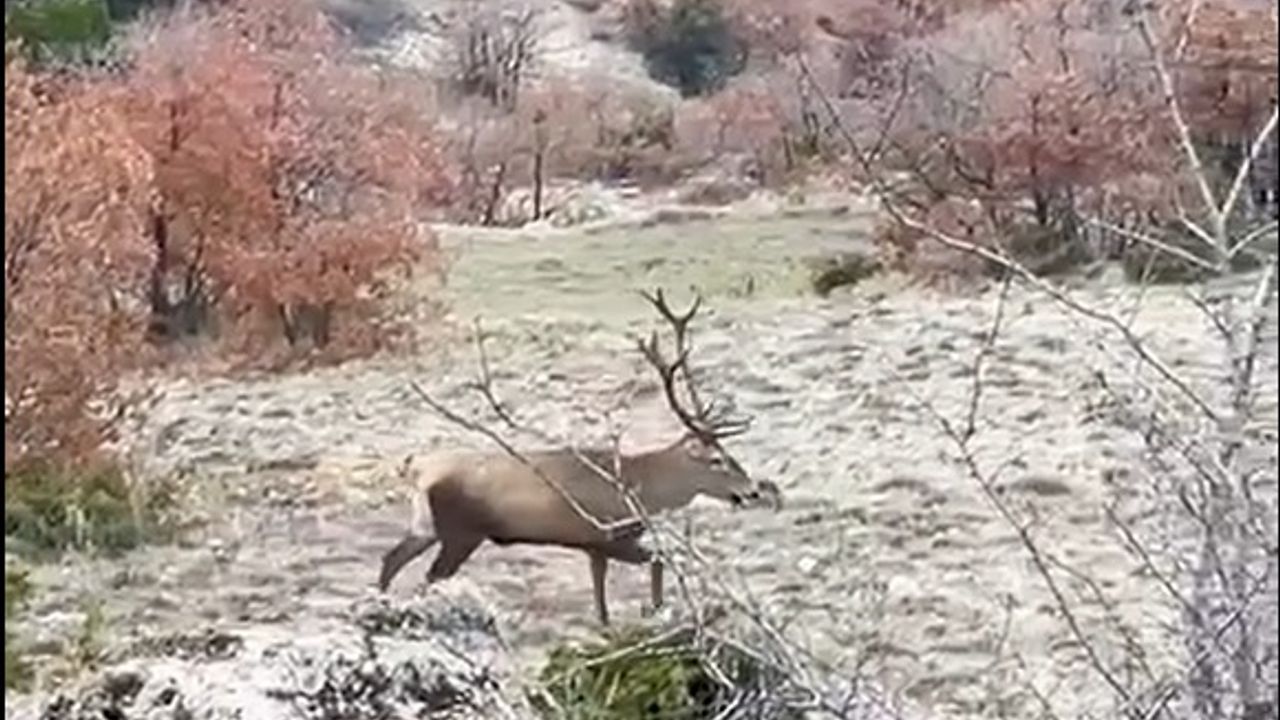 Ormanlık alandan geçen kara yolunda seyahat eden bir vatandaş, Türkiye'de yaşayan geyik türleri arasında en büyüğü olan kızılgeyikleri dolaşırken fark etti. Aracından inen vatandaş, sürü halinde gezen kızıl geyikleri cep telefonuyla görüntüledi. Bir süre yol kenarındaki arazide ilerleyen geyikler, ormana doğru giderek gözden kayboldu. (DHA)