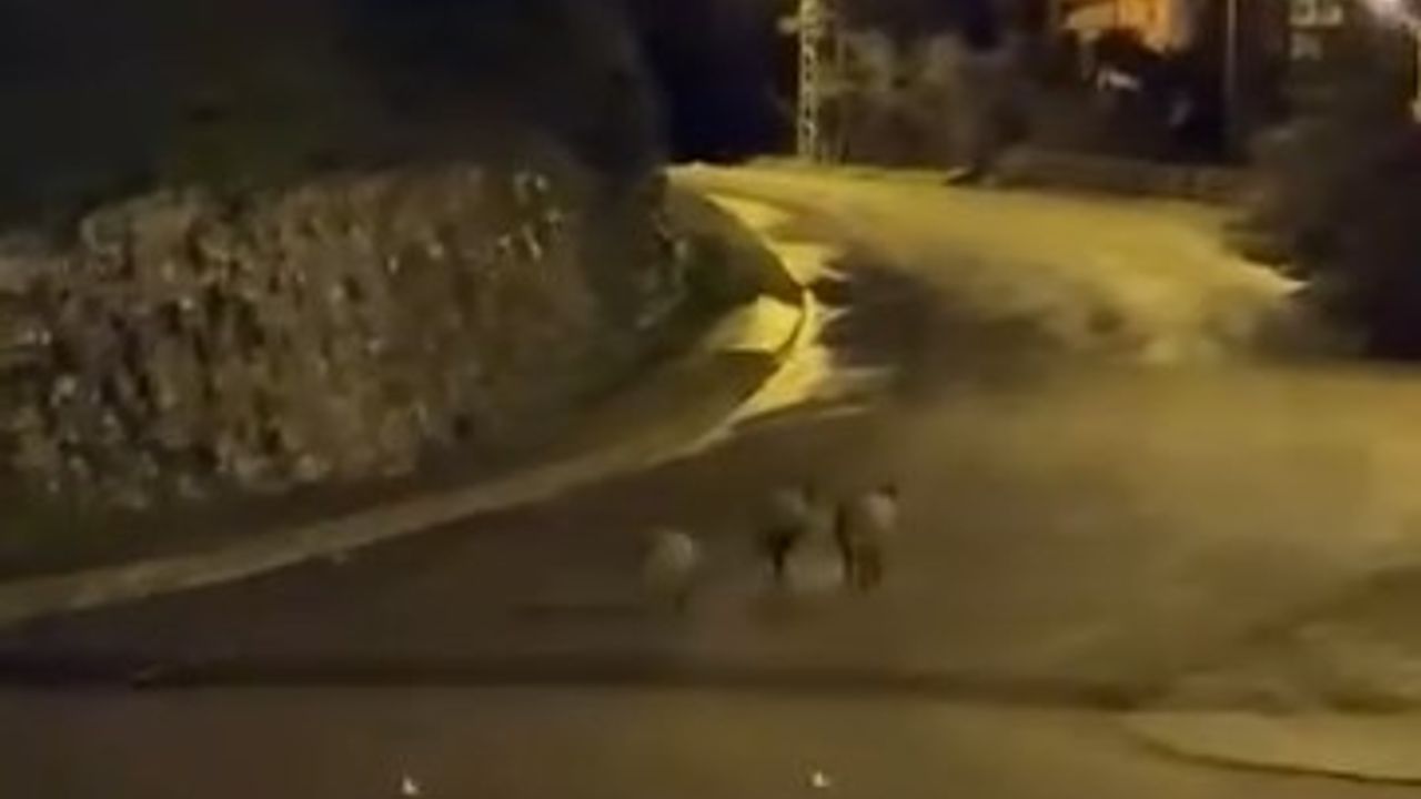 Olay, dün akşam Bağlık Mahallesi 1 Nolu Sakindere Sokak'ta meydana geldi. Evine giden bir kişi, bir anda karşısında yaban domuzlarını gördü. O anları cep telefonuyla kaydeden mahalleli, domuzlara saldırmak isteyen köpeğini durdurmaya çalıştı. Kısa süre mahallede dolaşan yaban domuzları daha sonra geldikleri istikamete gitti. Görüntülerde önce köpeği durduran kişinin, daha sonra domuzları kovalaması için ona talimat verdiği de görüldü. (DHA)
