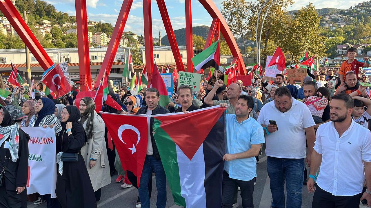 Gazze’de yaşanan katliama 'dur' demek için yürüdüklerini söyleyen Betül Demir, insanlık onuruna karşı suç işlendiğini belirterek, “Orada kadınlar, çocukla, yaşlılar, hastalar ve masum siviller yaşama hakkından mahrum bırakılıyor. Su, gıda ve ilaç gibi hayati önem taşıyan ne varsa abluka altında tutuluyor. Bu sadece Filistin halkına değil bütün insanlığa karşı işlenmiş bir suçtur. Bu bir cinayettir. Her geçen dakika bombalarla paramparça olan bir çocuk, yıkılan bir yuva, sönen umutlar demektir. Bizler Zonguldak'tan bu tabloya bakarken ne tarihin ne de vicdanımızın bizi affetmeyeceğini biliyoruz. Sessizlik suça ortak olmaktır. Yarın evlatlarımız, torunlarımız bize dönüp, 'Sen o gün ne yaptın? Zulme karşı çıktın mı, yoksa sessiz mi kaldın?' Dediğinde bir cevabımız olmalı. Çünkü susmak, zulmün ortağı olmaktır." dedi. (DHA)